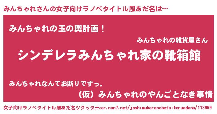 | 胡散臭い通販商品みたいなあだ名 | 『必ず成功するブレスレット…その名も「みんちゃれ」』 |