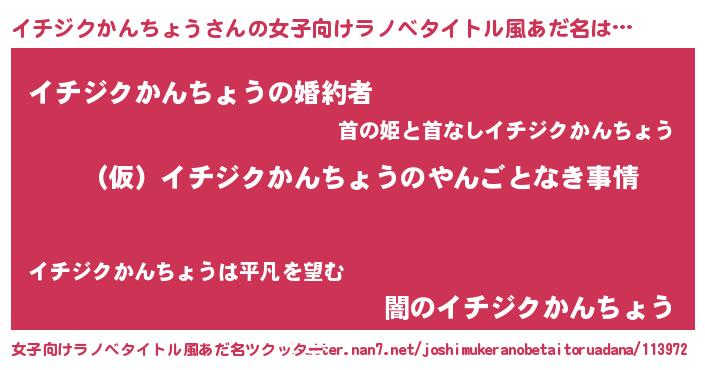 | 男性向けラノベタイトル風あだ名 | 『イチジクかんちょうの憂鬱』 |