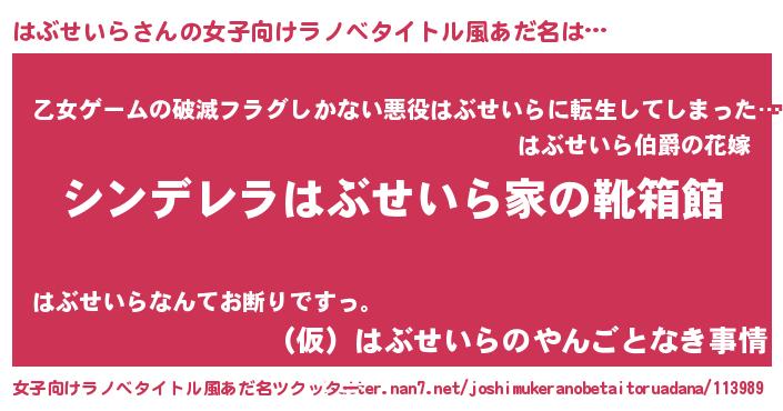 | 意味不明あだ名 | 『住所不定無職はぶせいら(56歳)』 |