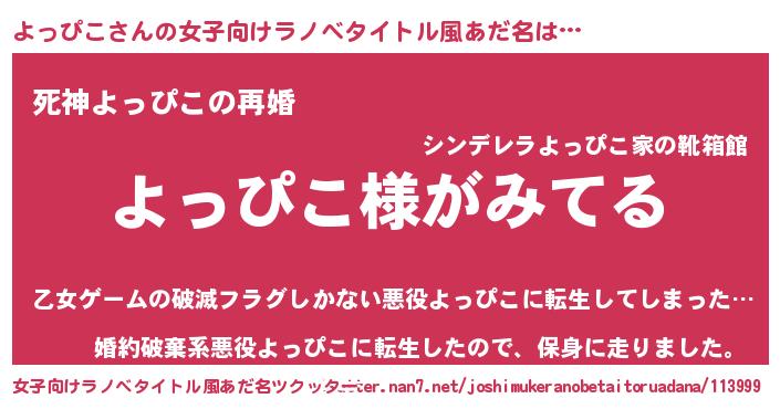 | ヒーロー風カッコイイあだ名 | 『天弓騎士ヨッ』『慈愛の使者よっぴこ』 |
