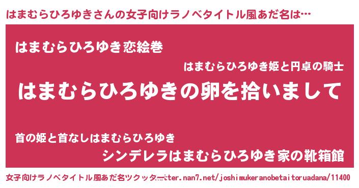| 男性向けラノベタイトル風あだ名 | 『はまむらひろゆきの嫁は女の子じゃないと思った?』 |