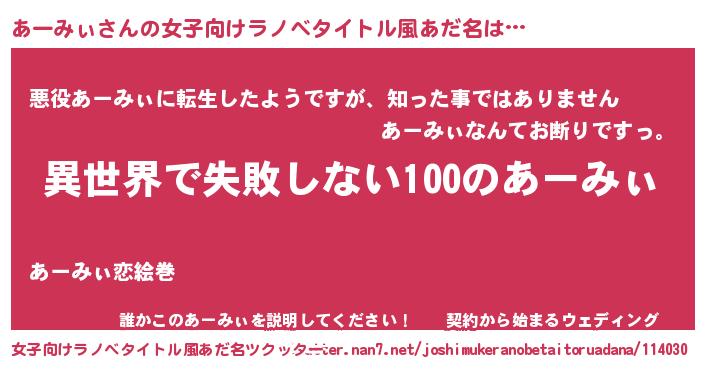 | 胡散臭い通販商品みたいなあだ名 | 『絶対に幸福をもたらす健康食品…その名も「あーみぃ」』 |