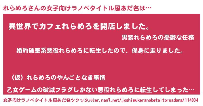 | ヘコむあだ名 | 『れらめろ(苦笑)』『れらにゅー』 |