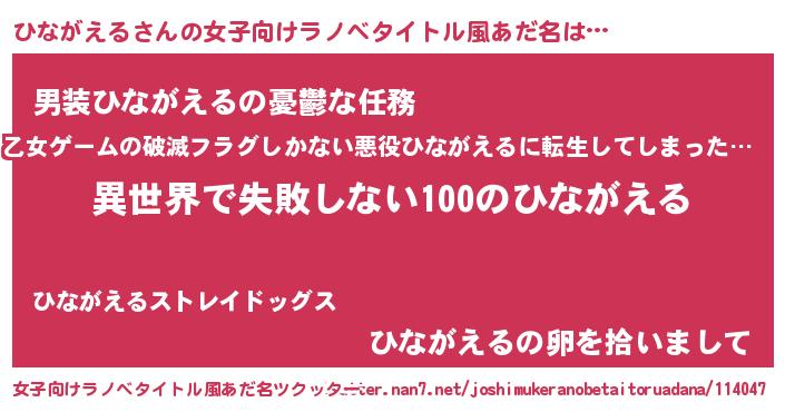 | 男性向けラノベタイトル風あだ名 | 『ひながえるという概念が存在しない退屈な世界 』 |