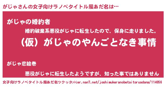 | 男性向けラノベタイトル風あだ名 | 『がじゃの憂鬱』『ガジャスレイヤー』 |