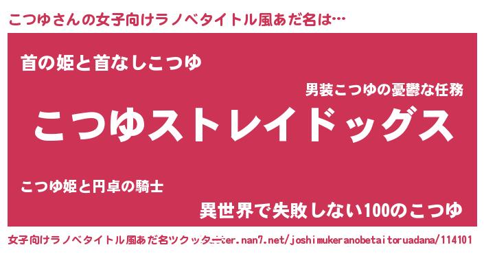 | 男性向けラノベタイトル風あだ名 | 『Re:こつゆから始める異世界生活』 |