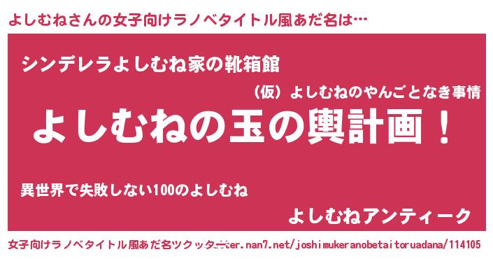 | 意味不明あだ名 | 『ヨモギ科よしむね属』『自称よしむね』 |