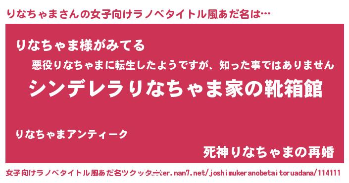 | 男性向けラノベタイトル風あだ名 | 『緋弾のリナチャマ』 |