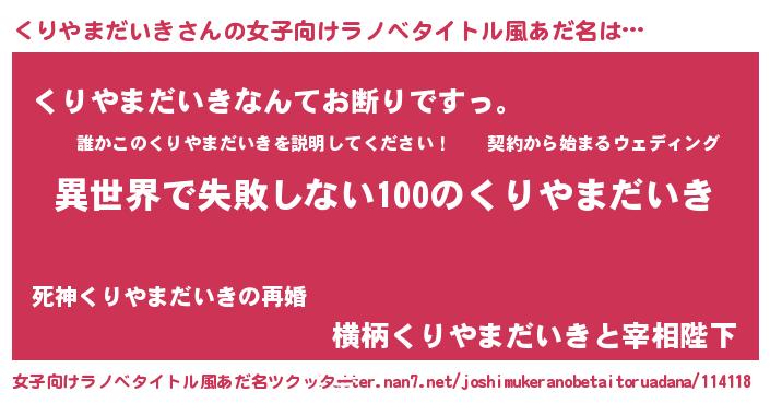 | 男性向けラノベタイトル風あだ名 | 『くりやまだいきという概念が存在しない退屈な世界 』 |