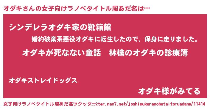 | 男性向けラノベタイトル風あだ名 | 『魔弾の王とオダキ』『オダキスレイヤー』 |