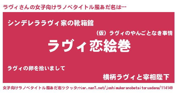 | ヒーロー風カッコイイあだ名 | 『慈愛の使者ラヴィ』『スーパーラヴィ』 |