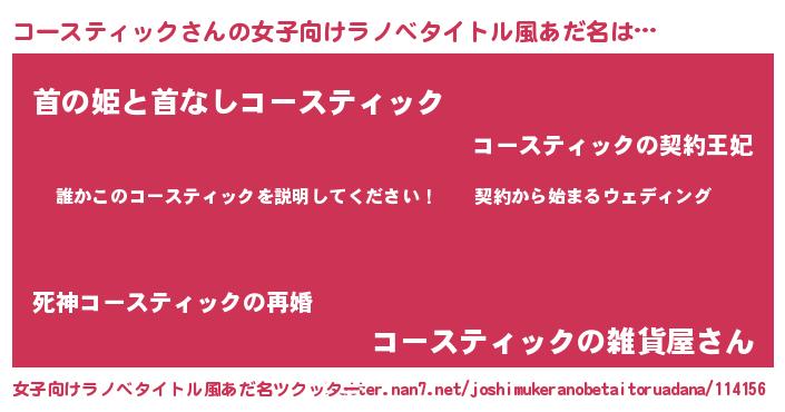 | 胡散臭い通販商品みたいなあだ名 | 『億万長者になれる水晶球…その名も「コースティック」』 |
