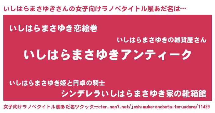 | 意味不明あだ名 | 『自称いしはらまさゆき』 |