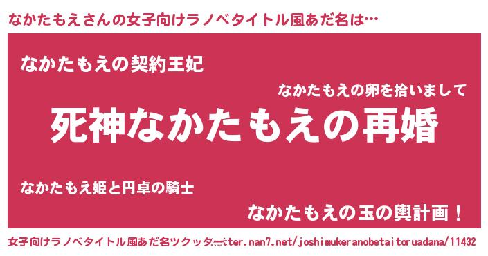 | 可愛いあだ名 | 『なかちゅっちゅ』『なかたもえママ』 |