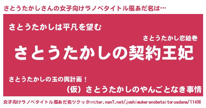 | 男性向けラノベタイトル風あだ名 | 『さとうたかしという概念が存在しない退屈な世界 』 |