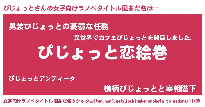 | 男性向けラノベタイトル風あだ名 | 『おまえをオタクにしてやるから、俺をぴじょっとにしてくれ! 』 |