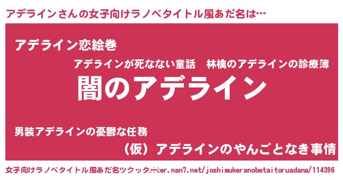 | 男性向けラノベタイトル風あだ名 | 『Re:アデラインから始める異世界生活』 |