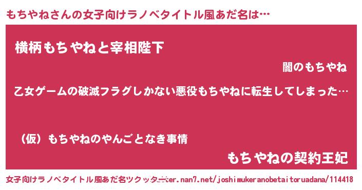 | 男性向けラノベタイトル風あだ名 | 『この素晴らしい世界にもちやねを!』 |