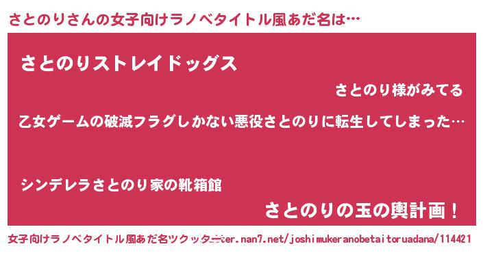 | 男性向けラノベタイトル風あだ名 | 『この素晴らしい世界にさとのりを!』 |