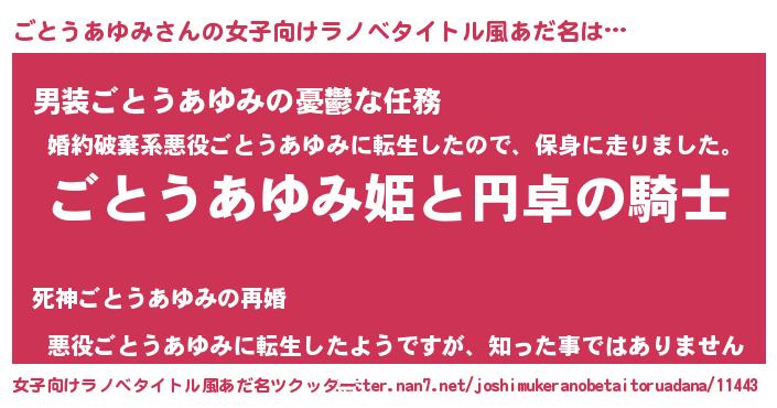 | 肩書あだ名 | 『ごとうあゆみ御曹司』 |
