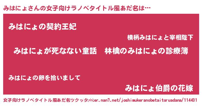 | 意味不明あだ名 | 『住所不定無職みはにょ(6歳)』 |