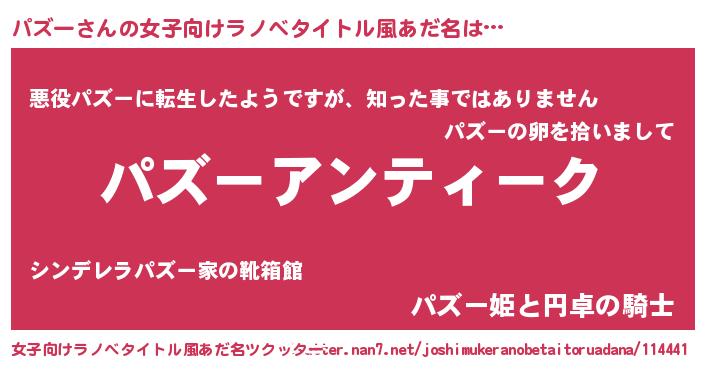 | ヘコむあだ名 | 『パズもー』『パズっちょ』『豆乳』 |