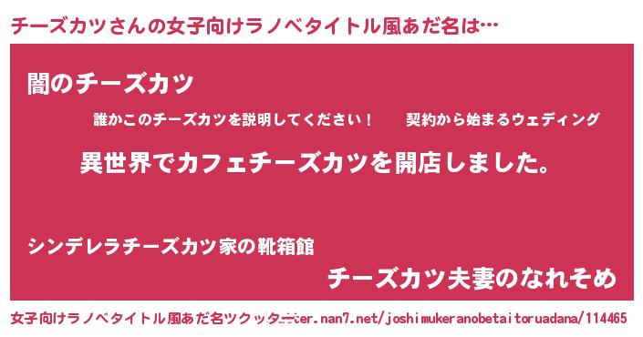 | 意味不明あだ名 | 『永久保存チーズカツ』『自称チーズカツ』 |