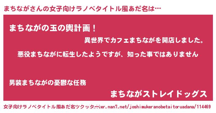 | 男性向けラノベタイトル風あだ名 | 『この素晴らしい世界にまちながを!』 |
