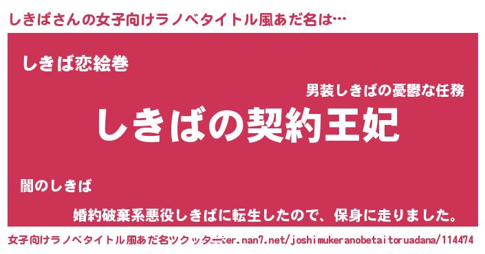 | ヒーロー風カッコイイあだ名 | 『ネオシキバ』『愛の使者しきば』 |