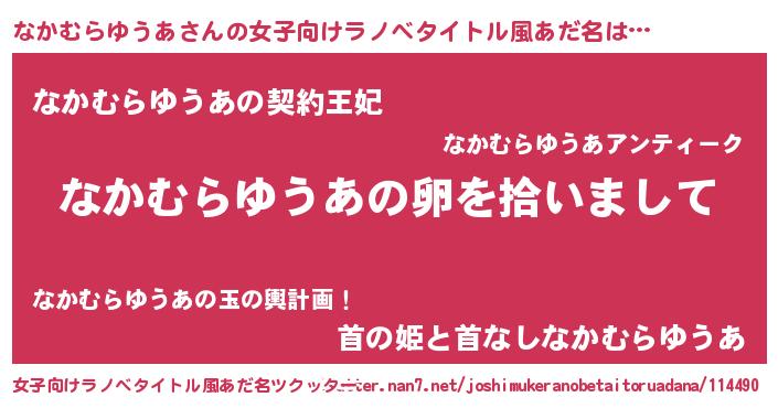 | 胡散臭い通販商品みたいなあだ名 | 『伝統あるサプリメント…その名も「なかむらゆうあ」』 |