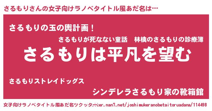 | 男性向けラノベタイトル風あだ名 | 『ダンジョンにさるもりを求めるのは間違っているだろうか』 |