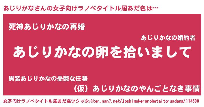 | 男性向けラノベタイトル風あだ名 | 『ダンジョンにあじりかなを求めるのは間違っているだろうか』 |