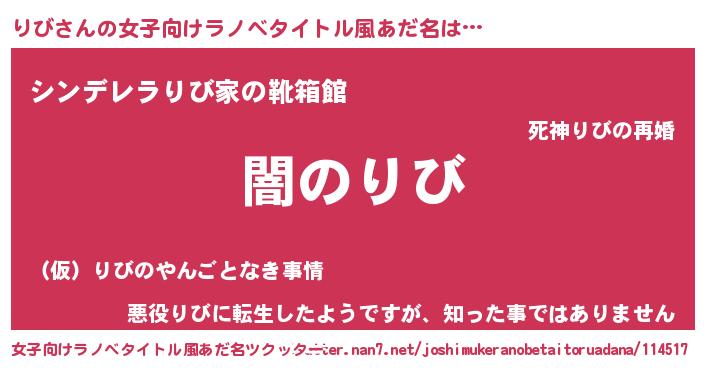 | 男性向けラノベタイトル風あだ名 | 『Re:りびから始める異世界生活』 |