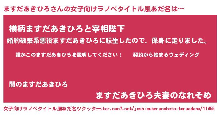 | 男性向けラノベタイトル風あだ名 | 『マスダアキヒロアートオンライン』 |