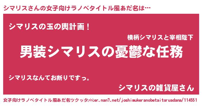 | 男性向けラノベタイトル風あだ名 | 『うちのシマリスが世界を掌握している!』 |