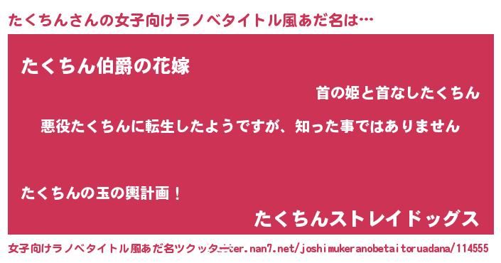 | 胡散臭い通販商品みたいなあだ名 | 『あなたにだけ特別に提供する世界で10本だけ現存している希少なブランデー…その名も「たくちん」』 |