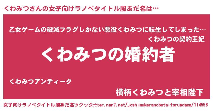 | 胡散臭い通販商品みたいなあだ名 | 『運命の人と巡り会える高級そうな壺…その名も「くわみつ」』 |