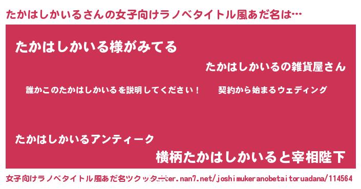 | 男性向けラノベタイトル風あだ名 | 『タカハシカイルアートオンライン』 |