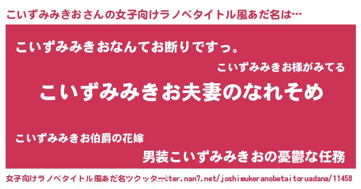 | 男性向けラノベタイトル風あだ名 | 『おまえをオタクにしてやるから、俺をこいずみみきおにしてくれ! 』 |