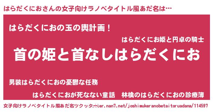 | 男性向けラノベタイトル風あだ名 | 『はたらくはらだくにおさま!』 |