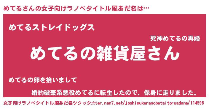 | 男性向けラノベタイトル風あだ名 | 『やはりめてるの青春ラブコメはまちがっている 』 |