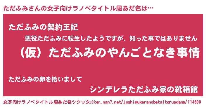 | 男性向けラノベタイトル風あだ名 | 『ただふみの憂鬱』『緋弾のタダフミ』 |
