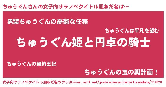 | ヒーロー風カッコイイあだ名 | 『スーパーチュウグン』『幻影騎士チュ』 |