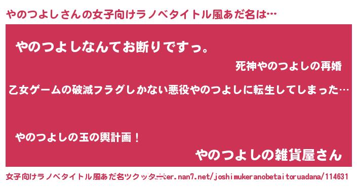 | 男性向けラノベタイトル風あだ名 | 『魔弾の王とやのつよし』 |