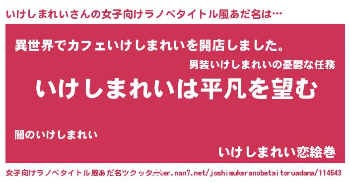 | 胡散臭い通販商品みたいなあだ名 | 『信頼と実績のペンダント…その名も「いけしまれい」』 |