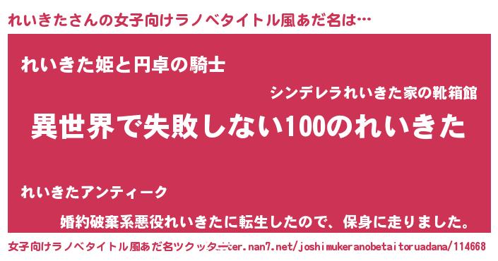 | ヘコむあだ名 | 『れいきた(爆)』『れいにー』 |