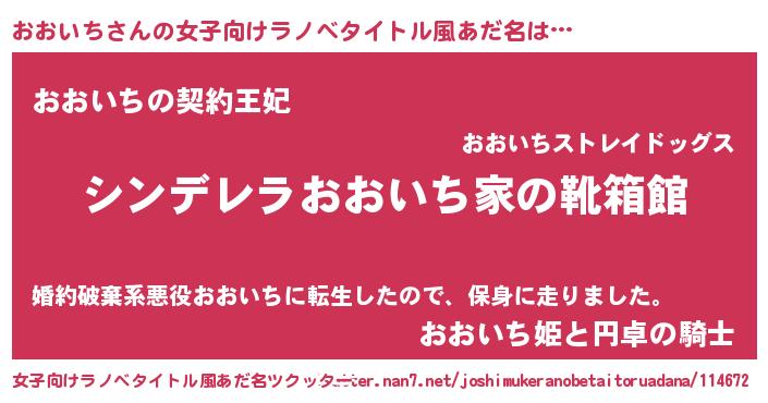| 男性向けラノベタイトル風あだ名 | 『緋弾のオオイチ』『オオイチスレイヤー』 |