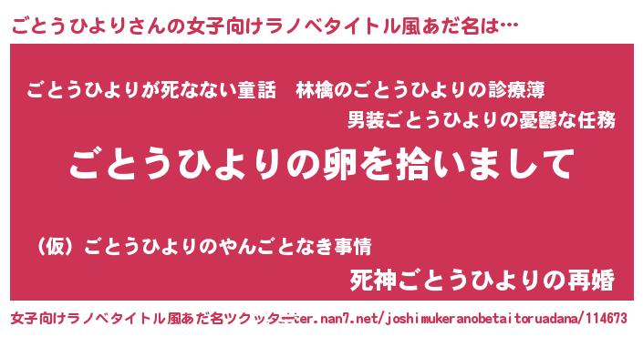 | 意味不明あだ名 | 『とにかく怪しいごとうひより』 |