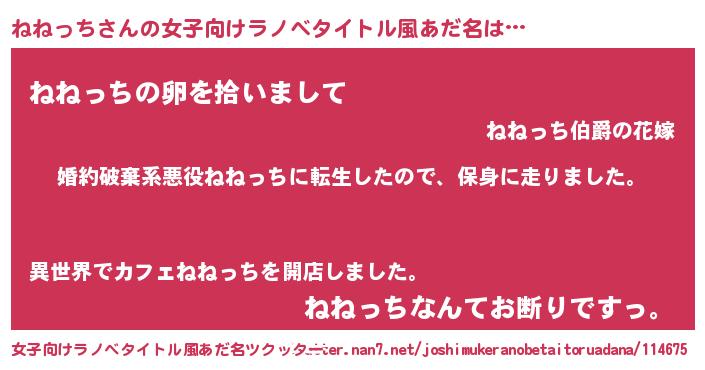 | 男性向けラノベタイトル風あだ名 | 『ネネッチスレイヤー』 |