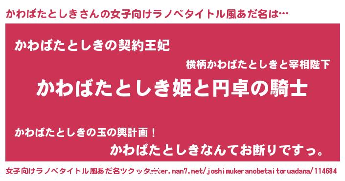 | 男性向けラノベタイトル風あだ名 | 『かわばたとしきの憂鬱』 |